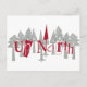 Send a note to make your left-at-home friends wish they were with you! Fun red and gray design features an arrow pointing north among the evergreens.