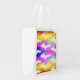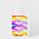 I own a lot of reusable grocery bags, but this one holds its box shape and simply stands up on its own even if there is nothing in it. Its stiffer than your regular reusable bag too, and the material is water resistant. I poured water on the exterior and it didn't penetrate inside to the other side. I'm buying a couple more. Wish I knew how durable these bags were or I would have purchased a few more with my initial order. I also like how it folds and buttons up when not in use, making it easy to put into a handbag or luggage. I haven't used this bag yet, as I purchased it for travel use, like when you're at the airport and need to small sturdy bag to place any airport purchases in, like food, souvenirs etc. I can tell you when you first see this bag, it looks very cheap, but after closer inspection of the material and the seams its a very sturdy reusable bag. I tested it out by putting some really heavy objects inside and I could not observe any stress to the bag at all. Another thing I like about it, is the fact the medium size that this is makes it easy to just carry it in your hand without the bottom of the bag scraping the ground, like most other bags do when you're short. That alone, deserves 5 stars. I just wish there were more colors to choose from! The PDX Airport Carpet printing looks just like the photo, and using this bag during travel might be a conversation piece when/if a native from Oregon happens to see it.