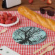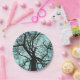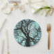These decorative paper plates feature the view from the bottom of a very tall tulip tree looking way up to the top. The blue twilight sky creates an interesting lacy abstract pattern of silhouetted trunk and branches. This huge old tree lives in Robert H. Treman State Park in Ithaca, New York.