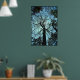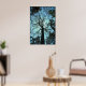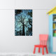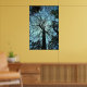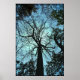 This poster features the view from the bottom of a very tall tulip tree looking way up to the top. The blue twilight sky creates an interesting lacy abstract effect of silhouetted trunk and branches. This huge old tree lives in Robert H. Treman State Park in Ithaca, New York.
