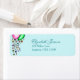 This return address label features a cute little bunny rabbit holding onto a green and a pink balloon. Tiny little flowers are falling all around him as he sails Up, Up and Away! Background is pale sky blue and you personalize with your name in a teal blue elegant script and your address in teal blue basic italian print.