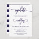 Yes, you can print on the back of your invitation for free! Most designs already have a corresponding design on the back that can be personalized using the Design Tool and going to Layers. This is a great way to communicate more information or further personalize your Update Postponed Wedding Navy Blue Script Invitation. The option is really up to you.