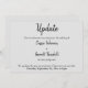 Here's a simple card for notifying your guests if it's become necessary to change your wedding date. Use the template fields to add your personal details and make this simple, versatile design your own. The background can be changed to any color you prefer. All fonts and colors are also editable. Please reach out with any special requests or for customizing assistance. Other pieces with alternate wording are available in the collection.
