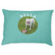 LOVE, love, LOVE this doggy pillow/bed. I purchased this dog bed a few years ago, in a different design, so I know it is a quality dog bed. The cover zips off for easy laundering and it doesn't shrink or pill after multiple machine washings. I use it at the end of the chaise section of my sofa as a bed for my dog and to help keep the sofa clean where she lays. I uploaded this photo design with her name and a picture of her sleeping on another pillow on our bed, with waves added in because I just know she's dreaming of being on the beach. When I received this new one, I replaced the old one on the sofa and Sara immediately laid down on it and knew it was for her. If you have a larger dog (Sara is about 25lbs) you'll want to order the larger size. Zazzle's printing and colors are always perfect. I'm a photographer, and I know how I expect the colors to come out, and they always do with Zazzle.