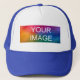 Upload Image Logo Photo Create Your Own White And Royal Blue Elegant Modern Template Trucker Hat.