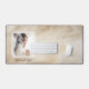 LOVE this desk mat! It's large! It fits across my desk. No need for a small mouse pad now! Color and print are excellent. Quality seems to be excellent too. Delivery was about 3 days sooner than expected. I think this is one of my favorite Zazzle products! Excellent. The color is vibrant and true to what I expected.
