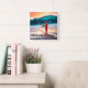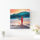 Upright Surfboard in Sand with Wave Square Wall Clock
