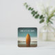 Upright Wooden Surfboard On Ocean Beach Square Business Card