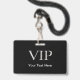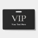 Classy VIP visitor, guest, or event badges in black with cool silver colored VIP text created as a graphic along with additional text you can customize online. Created for a company, corporate, or special events or night clubs.