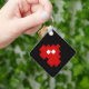 The key chain is made of metal and really sturdy. The flower design is really cheerful. The logo and colors are clear and crisp!