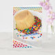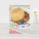 Flipped cupcake with birthday candles and colorful candy sprinkles.