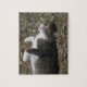 This irresistible kitty puzzle features a cat lying on a hill on his back with his little white paws up in the air. This adorable gray-striped cat with green eyes, freckled nose, and white chest makes this puzzle perfect for every cat lover.