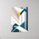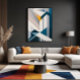 An abstract architecture rises in geometric lines crossing like skyscrapers of light. The golden tone breaks through blue and gray, revealing a symbolic sunrise that unites strength and delicacy. The artwork conveys modernity, hope, and the dynamism of growing cities.