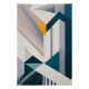 An abstract architecture rises in geometric lines crossing like skyscrapers of light. The golden tone breaks through blue and gray, revealing a symbolic sunrise that unites strength and delicacy. The artwork conveys modernity, hope, and the dynamism of growing cities.