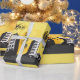 Make your gifts stand out with this unique urban architecture wrapping paper. The repeating pattern of grey buildings and yellow flourishes creates a sophisticated look for birthdays, graduations, or corporate gifts. This high-quality gift wrap adds a professional, artistic touch to any present.