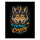 A striking coyote portrait fused with glowing city lights captures the spirit of wild resilience in a modern urban world.