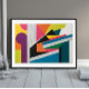 Urban Frequency captures the vibrant, fragmented pulse of city life through sharp geometric forms, bold contrasting colors, and rhythmic linear patterns. Angular shapes collide with organic curves, and textured white lines slash through the canvas like static in a city’s electric hum. It’s a piece that blends playfulness with edge—ideal for contemporary interiors or merchandise that needs to stand out with both energy and sophistication.