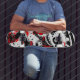 Unleash your inner hero with this quirky manga robot skeleton skateboard! Striking a dynamic pose, surrounded by abstract comic elements, ink strokes, and vibrant red splashes, this high-contrast design brings wit and style to your ride. Perfect for skaters and collectors alike, it offers both bold art and smooth performance, making every skate an adventure. Designed for those who want to stand out with originality and personality, this piece transforms your board into a true work of art.