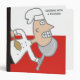 Funny urban indie comic style chef recipe cookbook notebook binder for hipster chefs, cooks, caterer or catering, culinary pros; he wears a chef's hat and jacket, holding a mixing spoon and skillet on a black background. Find letterhead inserts in my store!