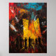 Step into a fiery vision of urban chaos with this contemporary expressionist artwork. Explosive brushstrokes and intense colors create a cityscape engulfed in energy, as shadowy figures stand before towering buildings consumed by light and movement. This piece captures the raw emotion of modern life, blending abstraction and structure in a dramatic visual symphony. A perfect statement for lovers of bold expressionism, dystopian cityscapes, and avant-garde aesthetics.