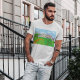 A very green urban park and cityscape. This design looks really effective on this Mens T-Shirt