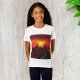 Brighten her wardrobe with this colorful girls t-shirt featuring a fun minimalist cityscape and sunset highway. The modern vector art uses a vibrant red dusk sky and golden hour glow to create an eye-catching urban skyline. With its cool winding road and retro silhouette, this shirt is perfect for young adventurers who love travel vibes and unique graphic designs.