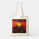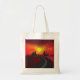 Carry your essentials in style with this durable tote bag featuring a striking urban skyline illustration. The design highlights a minimalist cityscape and winding road against a dramatic red dusk sky. Whether you are commuting or traveling, this modern vector art with a golden hour glow and retro silhouette adds a sophisticated touch to your everyday accessories.