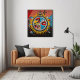 Rendered as metal wall art, the composition takes on an industrial sharpness. The metal surface amplifies contrast, edge definition, and graphic intensity, reinforcing the artwork’s connection to modern architecture and urban environments. Color and form appear bold, direct, and unapologetically modern.