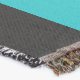 A quality printed throw has its advantages. This is a much finer weave throw than its loopier cousins, and though lighter, it is worth the investment for custom room accessorizing. The back is much prettier than the typical brown, and the fringe on the long sides very vivid, the selvage nicely done. Before photographing, I washed the throw in cold water, delicate, with a thicker woven throw the same size. On tumble dry low, this throw was dry in half the time as the other. This is a very practical quality if you use throws for furniture covers or to wrap up in frequently. The sleekness of the fabric makes it a great layer for accenting or protecting without the feeling of sitting on too much stuff. Perfect for napping or when you feel a light chill coming on. The color printing is beautiful and on this fabric, matched the design and color of my Photoshop image. This is an advantage for blending room fabrics and colors. The fringe on the short sides prints the colors from the design image and therefore varies from the side fringe. I streaked a white fractal line through the plaid pattern to give the illusion of weaving. This printed as crisp as an illusory thread, and put some white in the short side fringe, showing another advantage of print vs loomed- for artistic purposes, line lines, detail, and color integrity can be planned and preserved. My loomed throws have color limitations and more of a needlepoint texture. Print throws reproduce an exact image. The throw felt a little stiff straight out of the package, but this went away in the first delicate wash. Of course I searched the wash water for ink or bleeding and there was none.