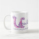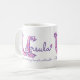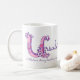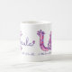 U initial monogram and name meaning pink and purple ink drawing art doodle letter U mug. Reads Ursula Little bear, strong, honest and lovable. Original letter U art ink drawing and design by Sarah Trett for www.mylittleeden.com