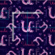 Modern decorative hand drawn graphic monogram initial letter U and name repeat patterned fabric. Doodle art monogrammed letter U hand drawn design with flowers and hearts. Customize with your own letter U name choice (please note not all names will fit due to the nature of the font) currently reads Ursula other name lengths are available, if you need assistance contact me, I am happy to post one for your name. Fabric in shades of pink and purple on a navy dark blue background which can be changed if required. A great way to personalize your sewing and quilting projects. Ideal for a girls personalized named sewing projects. Original art and design by Sarah Trett for www.mylittleeden.com