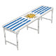 Not that I've had experience to buy that many beer pong or ping pong tables in my life, but I know a good quality product when I see it! This beer pong table is sturdy and solid and still lightweight enough to be portable. It folds and unfolds smoothly for easy storage or setup. From order to arrival here, the time was half of what was estimated, and that was during the holiday season. And -- most importantly -- the recipient LOVED it! I would definitely purchase this product again or other products by the maker Hampton Technologies , should an occasion to do so arise. The printing is beautiful! The blues and reds are deep and rich and the white "chalk look" is clean and crisp,. The photo (taken in low light) doesn't really do it justice. We know it's printed, but take a step back, and it really does look like chalk on a blackboard. To get the blue background like we did (instead of the traditional green chalkboard background), use background color #26306A. :)