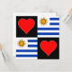 Cute square Uruguay greeting cards for proud Uruguayan people. With the a unique checkered pattern made from red hearts and the Uruguay national flag. Works great as an invitation for patriotic Uruguayan celebrations, reaching out to friends and family in Uruguay, or for patriotic arts and crafts projects!