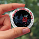 The button was just as expected. My mother's smile was captured so beautifully. The size was just right and the colors we chose were bright. The print was nice and clear. A person ordering should just make sure the wording is lined up in the center before submitting