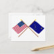 The gently waving flags of the United States and your "other" favorite place on crossed poles are an excellent way to display your affections or affiliations. Whether your current or ancestral home, someplace you have visited or would like to visit, or just because you like that flag, this postcard is for you!