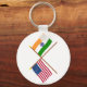 The gently waving flags of the United States and your "other" favorite place on crossed poles are an excellent way to display your affections or affiliations. Whether your current or ancestral home, someplace you have visited or would like to visit, or just because you like that flag, this keychain is for you!