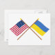 The gently waving flags of the United States and your "other" favorite place on crossed poles are an excellent way to display your affections or affiliations. Whether your current or ancestral home, someplace you have visited or would like to visit, or just because you like that flag, this postcard is for you!