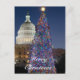 Evening photograph of the 2012 US Captiol Christmas tree with lights and star lit up.