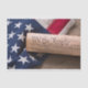 US Constitution rolled in a scroll on a vintage American flag