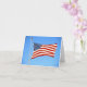A bright and colorful US flag flying against a beautiful blue sky. Inspiring and patriotic! Blank inside and suitable for any occasion.