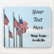 Photo art of a group of American flags flying in the breeze against a light blue sky with clouds. Designed with space for you to add your own message. Discounts for multiple orders. By D. Bennett from Balance America.