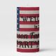 US Patriotic American Flag on a simulated linen fabric with stars and stripes, red white and blue colors, and text. The calligraphic text is customizable.