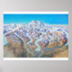 This beautiful painting of Denali National Park was Berann's final work. His depiction of the park landscape is vertically exaggerated by around 2:1, and the peak of Denali at the center is given an additional boost in height for dramatic effect.