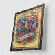 Celebrate a historic quarter-millennium with the USA 250 Years of Freedom Liberty Bell clock. This high-energy timepiece features a high-definition graphic that meticulously captures American iconicism. The design centers on a bronzed Liberty Bell and the Torch of Liberty, set against a backdrop of a waving American flag and a soaring bald eagle. Banners marking "1776" and "2026" flank the bell, while the base features a grand golden scroll proclaiming "250 YEARS OF FREEDOM" amidst a bed of red roses and blue cornflowers. The artwork is presented on a vertical light-wood plank background and encased in a dark, textured square border. While the imagery masterfully mimics the dimensional, impasto-style texture of painted wood and metallic relief, this is a durable high-definition graphic application on a premium clock face.