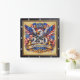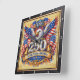 Commemorate a historic milestone with the USA 250th Anniversary Golden Eagle clock. This high-energy timepiece features a high-definition graphic that captures a grand, festive atmosphere. The design centers on a majestic bald eagle with wings outspread, set against a dazzling backdrop of fireworks and waving American flags. Two golden Liberty Bells flank a prominent, metallic-style "250," while a grand golden scroll proudly displays "UNITED STATES OF AMERICA" and the "1776–2026" dates. The artwork is presented on a vertical light-wood plank background and encased in a dark, textured square border. While the imagery masterfully mimics the opulent, dimensional textures of gold leaf and high-relief metalwork, this is a durable high-definition graphic application on a premium clock face.