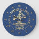 At the center is a beautifully crafted illustration inspired by the iconic Golden Gate Bridge, symbolizing American ingenuity, strength, and connection across the nation. Framing the design, refined gold accents highlight the inscription “United States – 250th Anniversary – 1776–2026,” marking this once-in-a-generation celebration of American history. Surrounding the design are elegant gold Roman numerals that bring a timeless and classic look while making the clock easy to read. The gold accents are highlighted by a deep blue background.