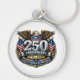 Keychain is shown in a patriotic USA flag eagle 250th anniversary print.