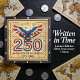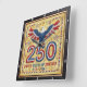 Celebrate 250 years of American freedom with this distinctive Anniversary Eagle clock. This high-energy timepiece features a high-definition graphic that showcases a unique, tactile craft aesthetic. The design centers on a bold bald eagle with red, white, and blue plumage, perched above a large "250" rendered in a thick, patriotic braided-rope texture. Festive firework motifs and golden stars accent the "UNITED STATES OF AMERICA" and "1776–2026" text, all framed by a matching red, white, and blue rope border. Set against a light-toned vertical wood-plank background, the artwork masterfully mimics the dimensional textures of needlework and cord-craft. However, this is a durable high-definition graphic application on a premium square clock face with a dark, textured border. It is a prestigious and commemorative centerpiece for any home or office.