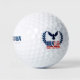 A golf ball featuring a patriotic design with an eagle and the USA flag emblem.