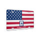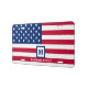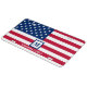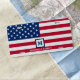God Bless America. The Land Of The Free. This red, white and blue American flag design can be given as a gift for a 4th of July party, Independence Day celebrations, military graduation, police retirement, family reunion, Memorial Day event, company picnic, wedding, beach house, backyard barbecue or any occasion. The patriotic USA flag monogram design can be personalized with the initial and name of the family, company or retired employee. The design is yours to customize as you wish.